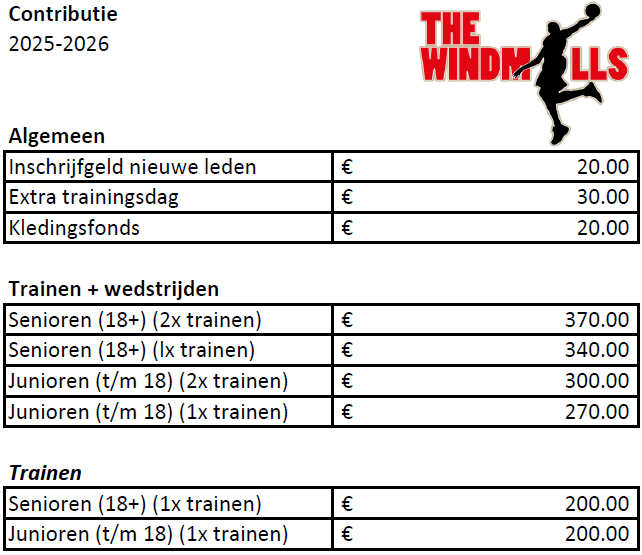Ben je nog geen lid van The Windmills, neem dan contact op met het bestuur voor meer informatie over de trainingstijden.